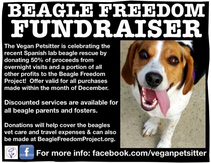 For the month of December, I am donating 50% of proceeds from overnight visits and a portion of all other profits to the Beagle Freedom Project.